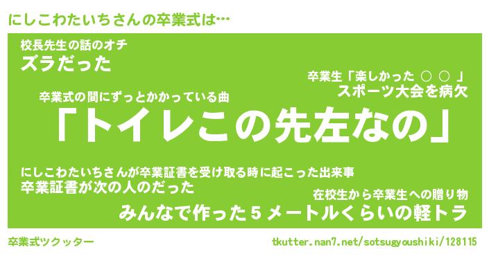 | 胡散臭い通販商品みたいなあだ名 | 『必ず成功するブレスレット…その名も「にしこわたいち」』 |