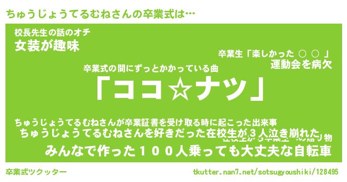 | 男性向けラノベタイトル風あだ名 | 『ちゅうじょうてるむねの憂鬱』 |