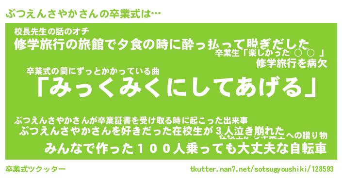 | ヘコむあだ名 | 『ぶつにー』『つくし』『ぶつを』 |
