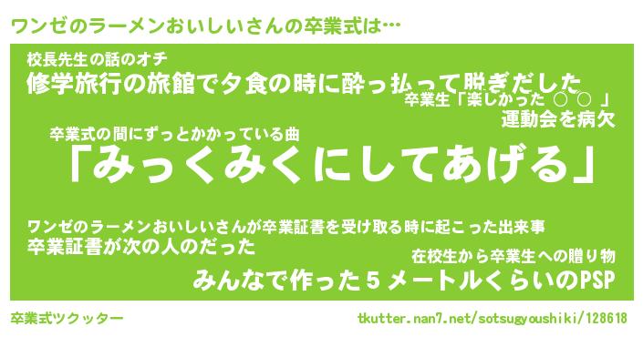 | 胡散臭い通販商品みたいなあだ名 | 『必ず成功する水晶球…その名も「ワンゼのラーメンおいしい」』 |