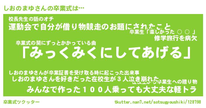 | 胡散臭い通販商品みたいなあだ名 | 『必ず成功するブレスレット…その名も「しおのまゆ」』 |