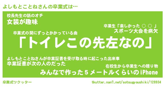 | 男性向けラノベタイトル風あだ名 | 『よしもとことねの憂鬱』 |
