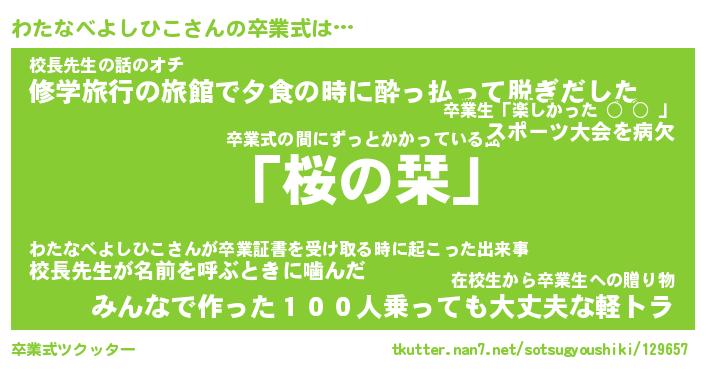 | ヘコむあだ名 | 『わたにー』『なまこ酢』『わたお』 |