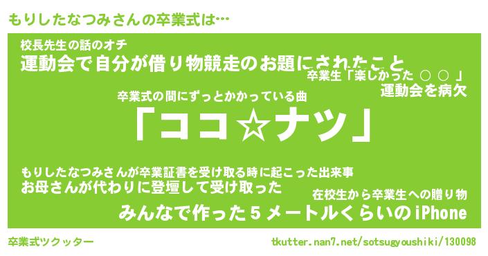 | 伝説のあだ名 | 『不死鳥のスナイパーもりしたなつみ』 |