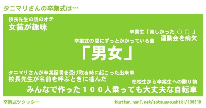 | 男性向けラノベタイトル風あだ名 | 『タニマリの憂鬱』 |