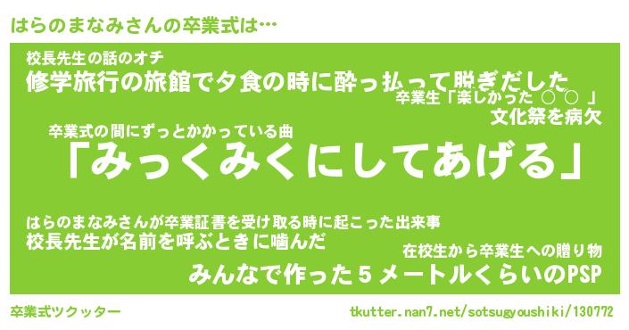 | 伝説のあだ名 | 『伝説のスナイパーはらのまなみ』 |
