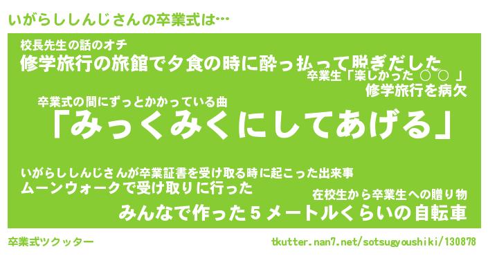 | 胡散臭い通販商品みたいなあだ名 | 『必ず成功するブレスレット…その名も「いがらししんじ」』 |