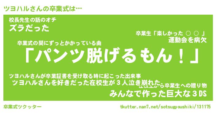 | 胡散臭い通販商品みたいなあだ名 | 『モテモテ間違いなし霊験あらたかなお札…その名も「ツヨハル」』 |