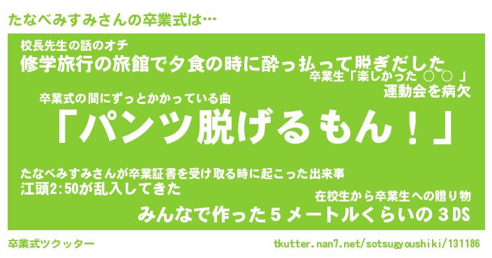 | ヘコむあだ名 | 『たなふぇ~』『豆乳』『たなっ子』 |