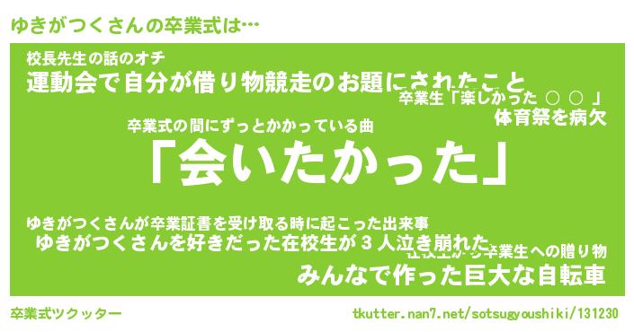 | ヘコむあだ名 | 『ゆきにゅー』『つくし』『ゆき太郎』 |