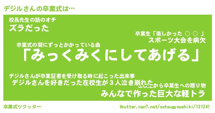 | ヘコむあだ名 | 『デジにゅー』『酢こんぶ』『デジお』 |