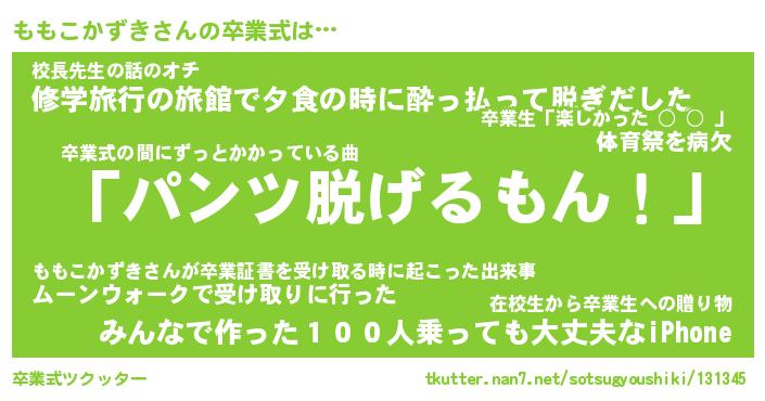 | 伝説のあだ名 | 『不死鳥のスナイパーももこかずき』 |