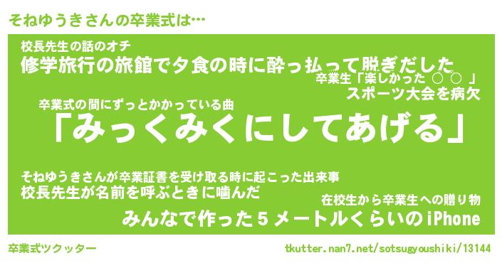 | 伝説のあだ名 | 『伝説のスナイパーそねゆうき』 |