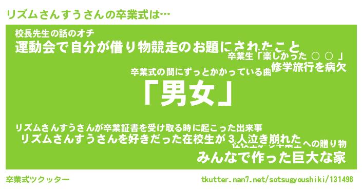| ヘコむあだ名 | 『リズもー』『つくし』『リズお』 |
