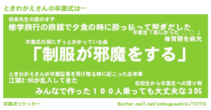| ヘコむあだ名 | 『ときっふぃ~』『なまこ酢』 |