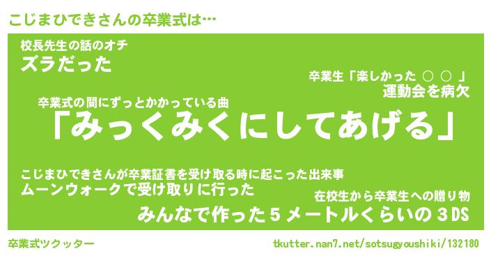 | 2回繰り返すあだ名 | 『こじこじ』『ここじじ』『いじいじ』 |