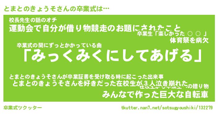 | 2回繰り返すあだ名 | 『とまとま』『ととまま』『けらけら』 |