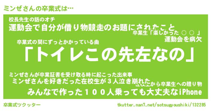 | 伝説のあだ名 | 『伝説のスナイパーミンぜ』 |