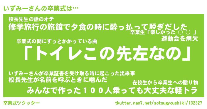 | ヘコむあだ名 | 『いずにー』『牛乳』『いずを』 |