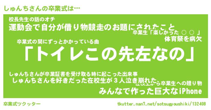 | ヘコむあだ名 | 『しゅにゅー』『つくし』『しゅ太郎』 |