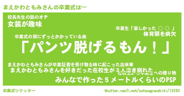 | 胡散臭い通販商品みたいなあだ名 | 『モテモテ間違いなし霊験あらたかなお札…その名も「まえかわともみ」』 |