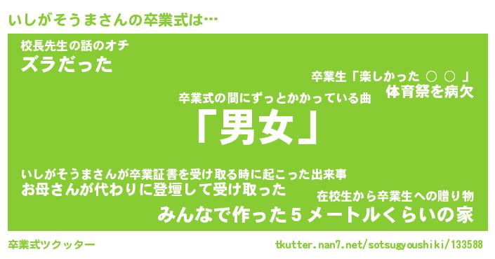 | 伝説のあだ名 | 『伝説のスナイパーいしがそうま』 |