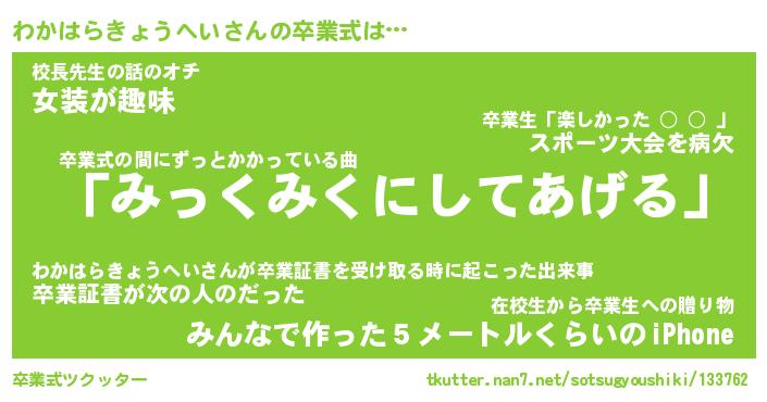 | 胡散臭い通販商品みたいなあだ名 | 『必ず成功する霊験あらたかなお札…その名も「わかはらきょうへい」』 |