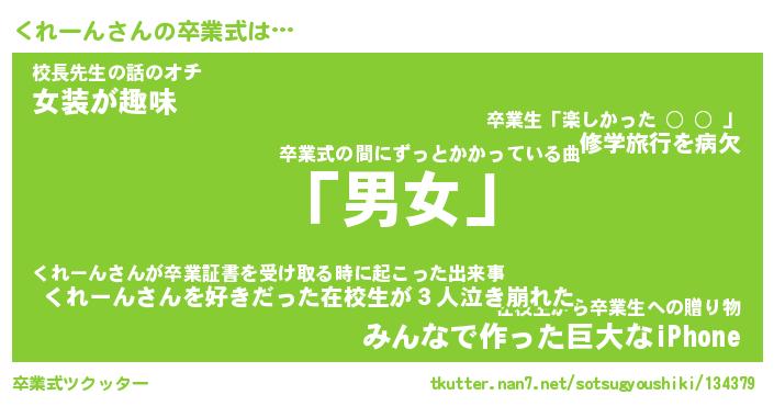| 男性向けラノベタイトル風あだ名 | 『くれーんの憂鬱』 |