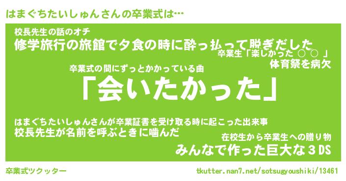 | 伝説のあだ名 | 『不死鳥のスナイパーはまぐちたいしゅん』 |