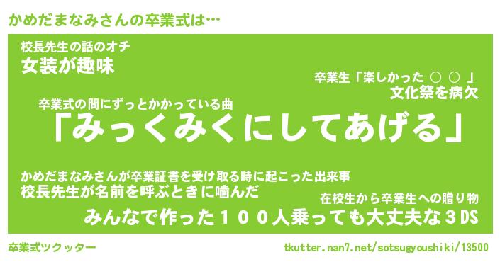 | ヘコむあだ名 | 『かめにゅー』『酢こんぶ』 |