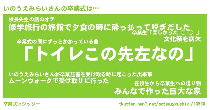 | 胡散臭い通販商品みたいなあだ名 | 『必ず成功する霊験あらたかなお札…その名も「いのうえみらい」』 |