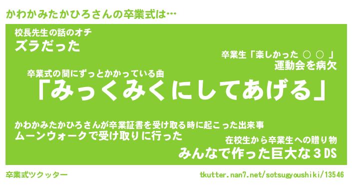 | 胡散臭い通販商品みたいなあだ名 | 『必ず成功するブレスレット…その名も「かわかみたかひろ」』 |