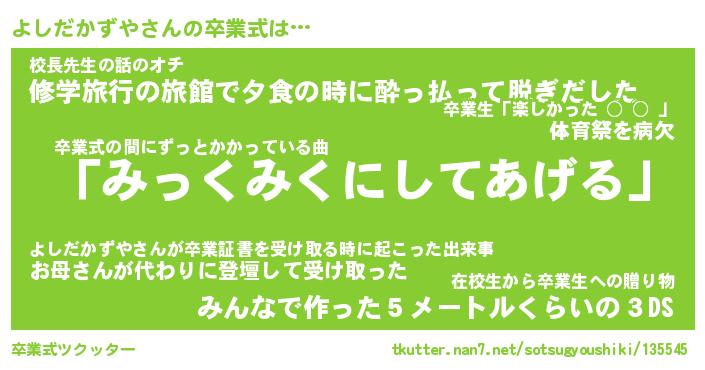| 伝説のあだ名 | 『伝説のスナイパーよしだかずや』 |