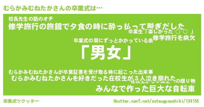 | 男性向けラノベタイトル風あだ名 | 『むらかみむねたかの憂鬱』 |