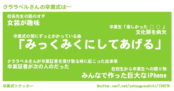| 胡散臭い通販商品みたいなあだ名 | 『必ず成功する霊験あらたかなお札…その名も「クララベル」』 |