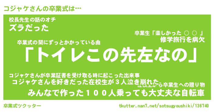 | 男性向けラノベタイトル風あだ名 | 『コジャケの憂鬱』 |