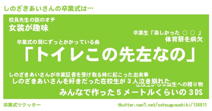 | ヘコむあだ名 | 『しのもー』『酢こんぶ』『しのっ子』 |