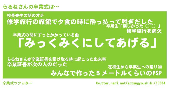 | 意味不明あだ名 | 『ペロリンらるね』『らるねフォーエバー』 |