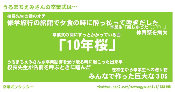 | 伝説のあだ名 | 『封印されしスナイパーうるまちえみ』 |