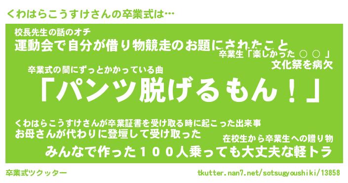 | 伝説のあだ名 | 『不死鳥のスナイパーくわはらこうすけ』 |