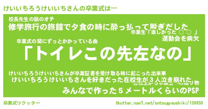 | 胡散臭い通販商品みたいなあだ名 | 『必ず成功する霊験あらたかなお札…その名も「けいいちろうけいいち」』 |