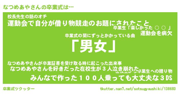 | 胡散臭い通販商品みたいなあだ名 | 『必ず成功する水晶球…その名も「なつめあや」』 |