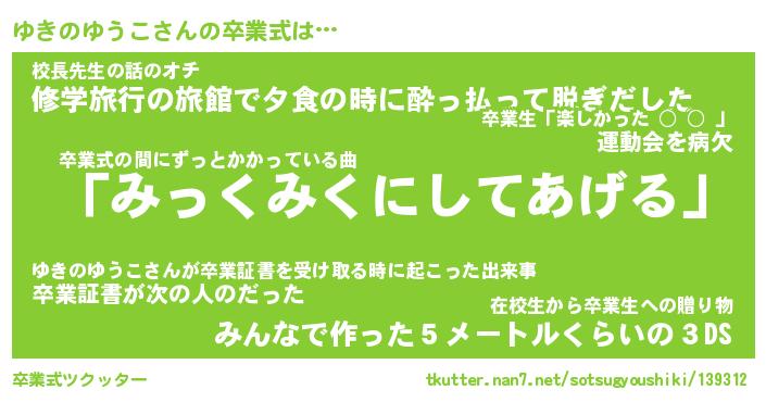 | ヘコむあだ名 | 『ゆきっふぃ~』『なまこ酢』 |