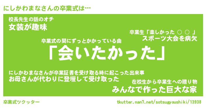 | ヒーロー風カッコイイあだ名 | 『スーパーニシカワマナ』『天弓騎士ニシ』 |