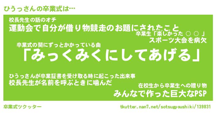 | ヘコむあだ名 | 『ひうもー』『つくし』『ひうお』 |