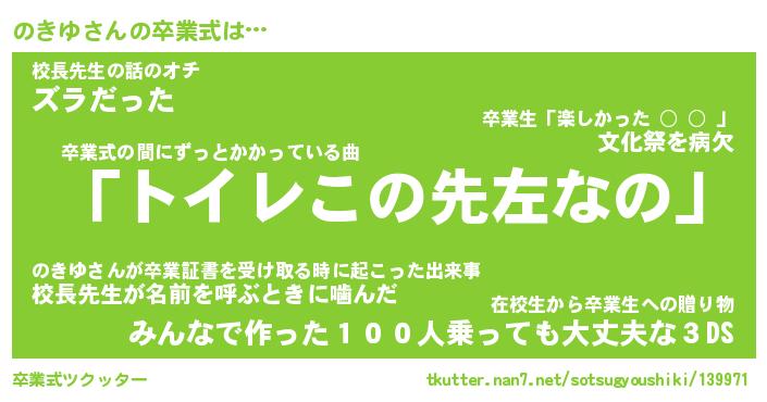 | ヘコむあだ名 | 『のきにゅー』『なまこ酢』 |
