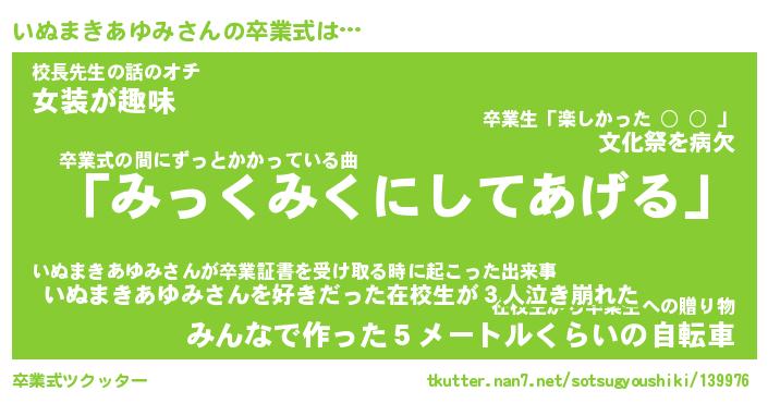 | 女子向けラノベタイトル風あだ名 | 『(仮)いぬまきあゆみのやんごとなき事情』 |