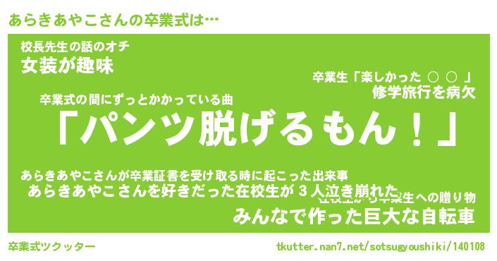 | 伝説のあだ名 | 『不死鳥のスナイパーあらきあやこ』 |