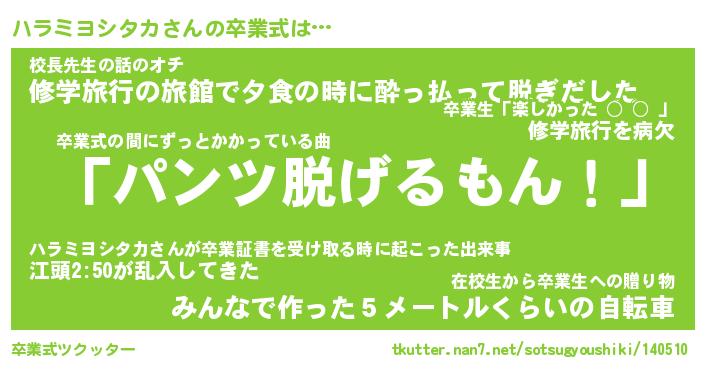 | ヘコむあだ名 | 『ハラもー』『牛乳』『ハラっ子』 |