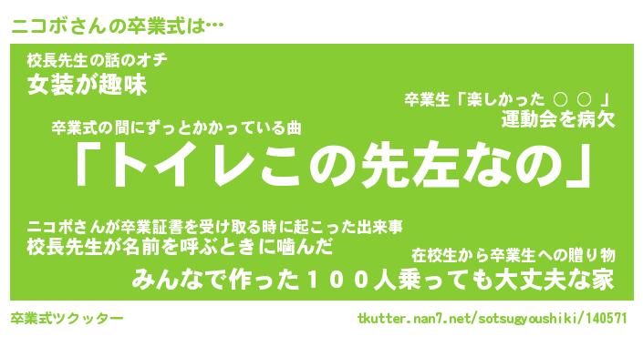 | 胡散臭い通販商品みたいなあだ名 | 『必ず成功する霊験あらたかなお札…その名も「ニコボ」』 |